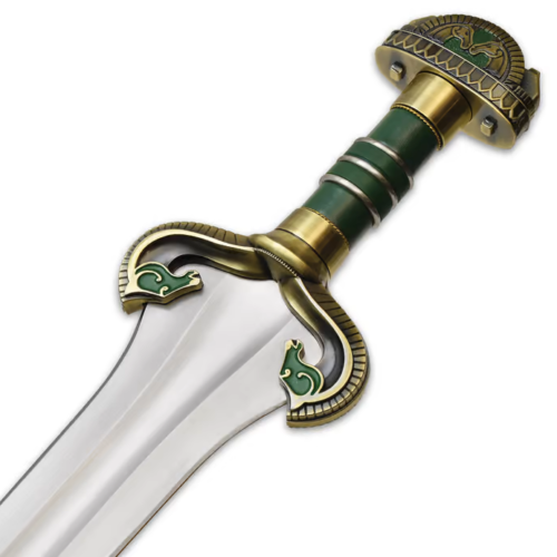 כל חרב ממוספרת סידורית בנפרד ומוצגת עם תצוגת קיר עץ ותעודת מקוריות. עתק החרב המפורט בצורה אותנטית הוא רפרודוקציה של חרב אביזר הצילום בפועל שנוצרה על ידי Weta Workshop מניו זילנד!